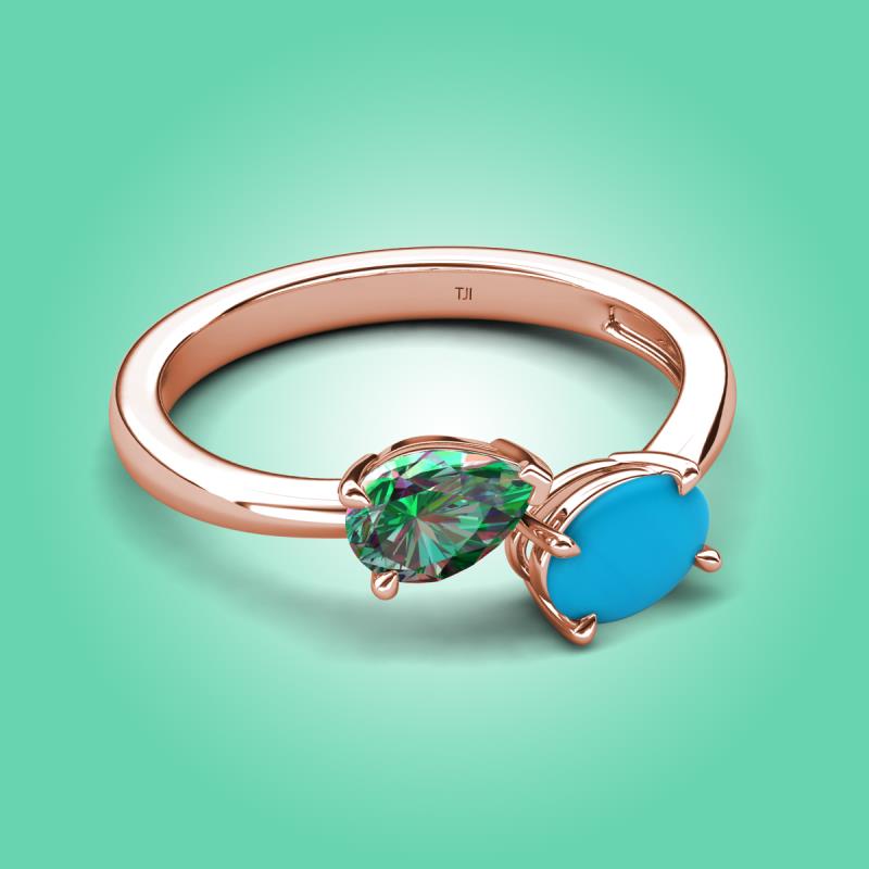 1.56 ctw Lab Created Alexandrite Pear Shape 7x5 mm & Turquoise Oval Shape 7x5 mm with Prong setting Two Stone Duo Women Engagement Ring in @PrimaryMet More Details ...