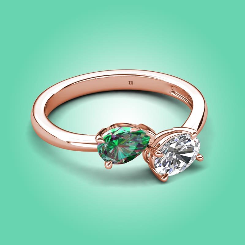 • 1 Lab Created Alexandrite Pear Shape 0.86 ctw/7x5 mm and 1 White Sapphire Oval Shape 1.00 ctw/7x5 mm Two Stone Duo Engagement Ring set in a Prong Setting.