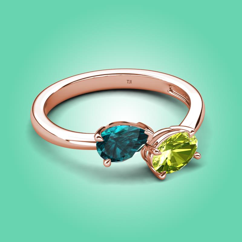 1.75 ctw London Blue Topaz Pear Shape 7x5 mm & Peridot Oval Shape 7x5 mm with Prong setting Two Stone Duo Women Engagement Ring in 18K Rose Gold More Details ...