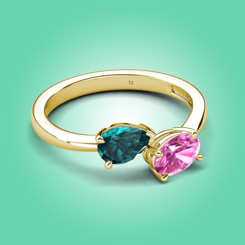 1.85 ctw London Blue Topaz Pear Shape 7x5 mm & Pink Sapphire Oval Shape 7x5 mm with Prong setting Two Stone Duo Women Engagement Ring in 14K Yellow Gold More Details ...