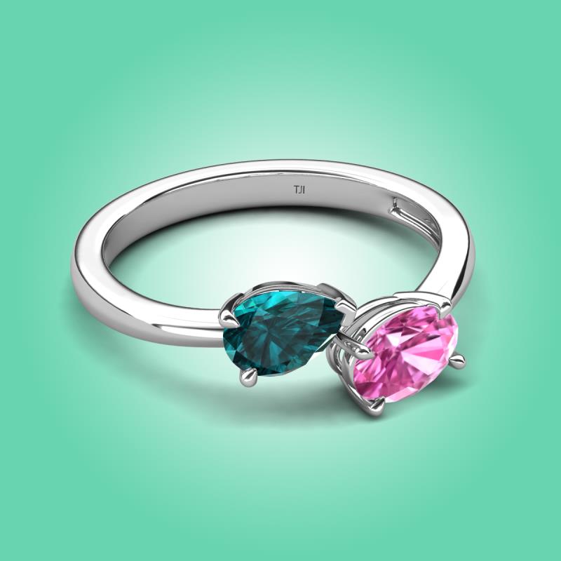 1.85 ctw London Blue Topaz Pear Shape 7x5 mm & Pink Sapphire Oval Shape 7x5 mm with Prong setting Two Stone Duo Women Engagement Ring in 18K White Gold More Details ...