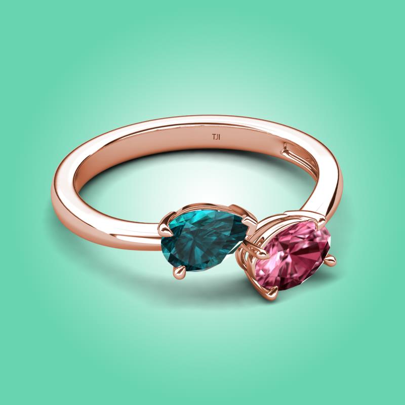 1.70 ctw London Blue Topaz Pear Shape 7x5 mm & Pink Tourmaline Oval Shape 7x5 mm with Prong setting Two Stone Duo Women Engagement Ring in 14K Rose Gold More Details ...
