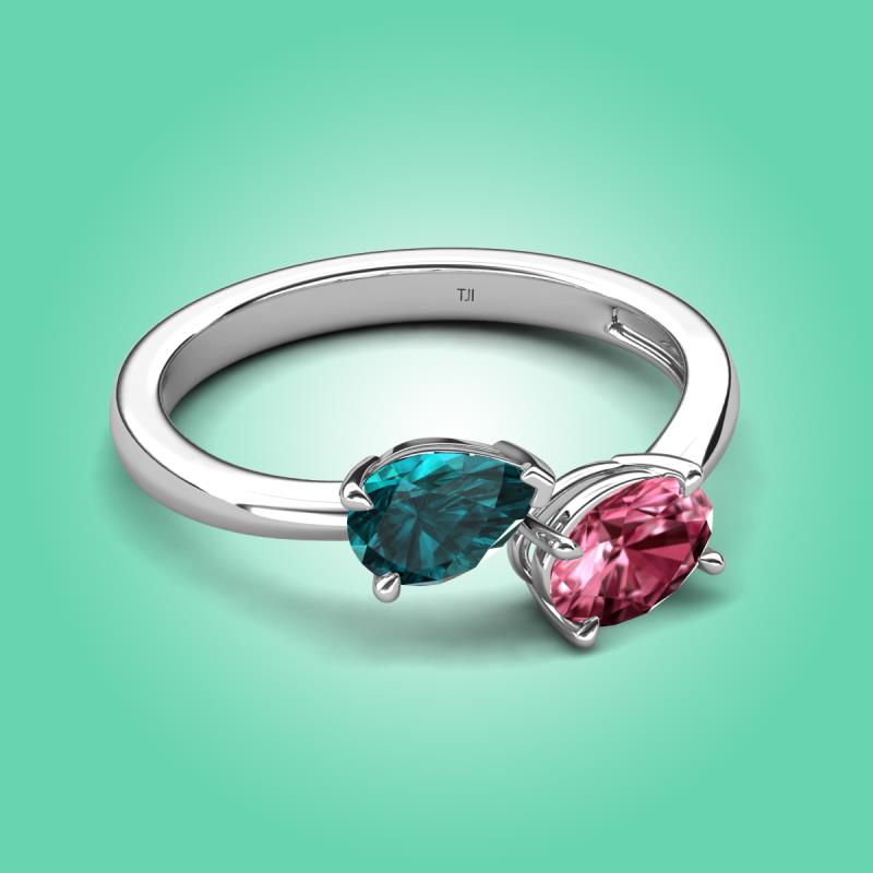 1.70 ctw London Blue Topaz Pear Shape 7x5 mm & Pink Tourmaline Oval Shape 7x5 mm with Prong setting Two Stone Duo Women Engagement Ring in 18K White Gold More Details ...