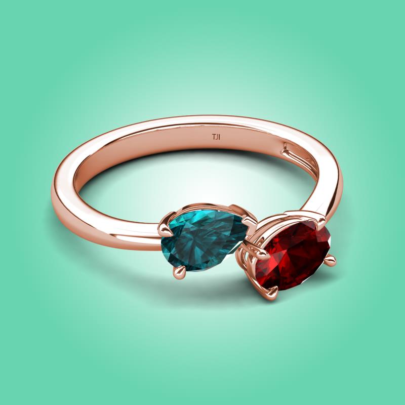 1.80 ctw London Blue Topaz Pear Shape 7x5 mm & Red Garnet Oval Shape 7x5 mm with Prong setting Two Stone Duo Women Engagement Ring in 18K Rose Gold More Details ...