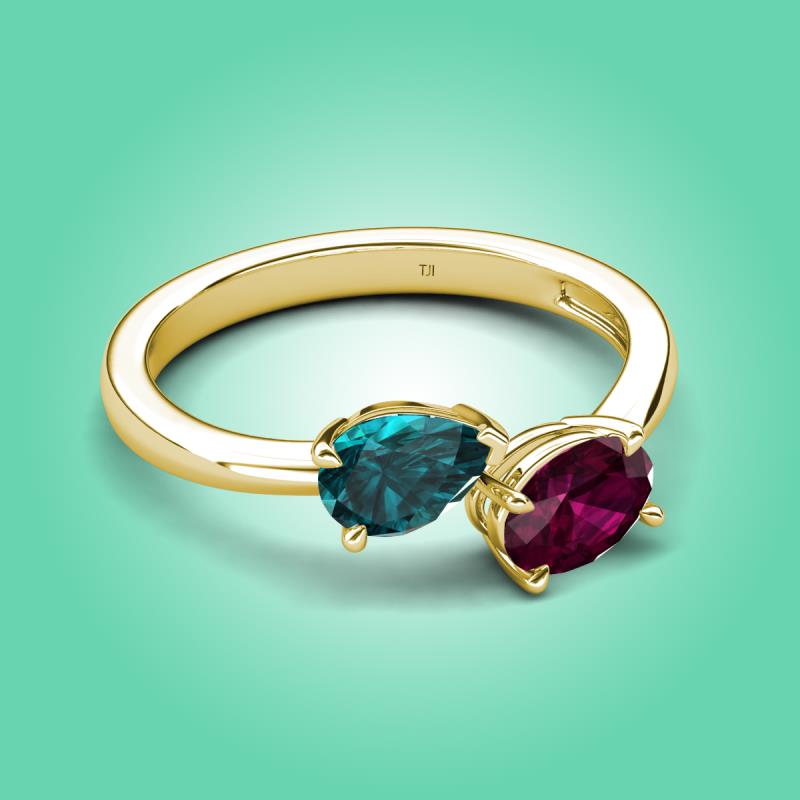 1.85 ctw London Blue Topaz Pear Shape 7x5 mm & Rhodolite Garnet Oval Shape 7x5 mm with Prong setting Two Stone Duo Women Engagement Ring in 14K Yellow Gold More Details ...