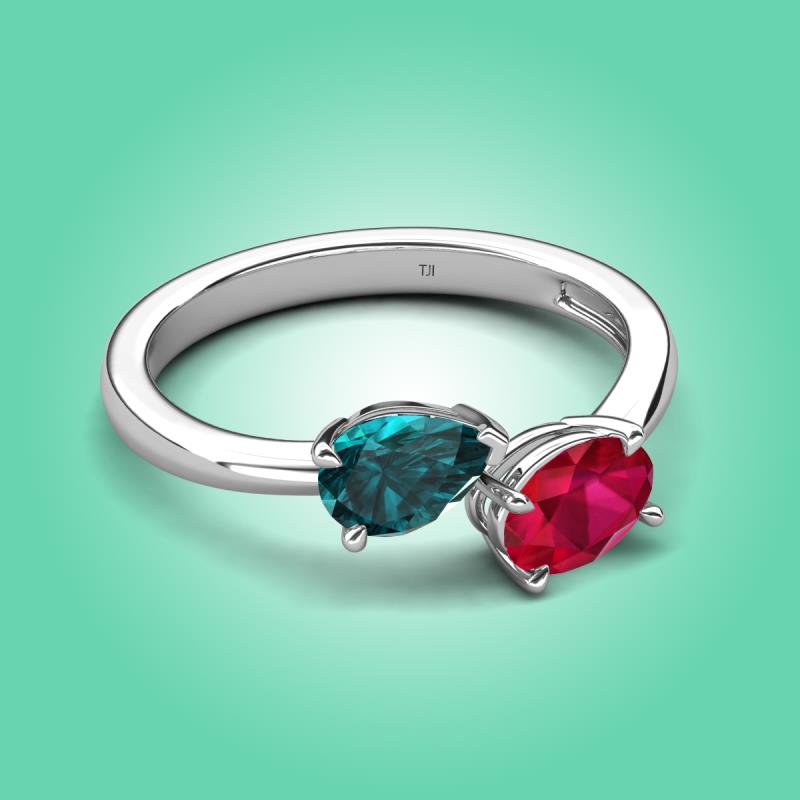 1.75 ctw London Blue Topaz Pear Shape 7x5 mm & Ruby Oval Shape 7x5 mm with Prong setting Two Stone Duo Women Engagement Ring in 10K White Gold More Details ...