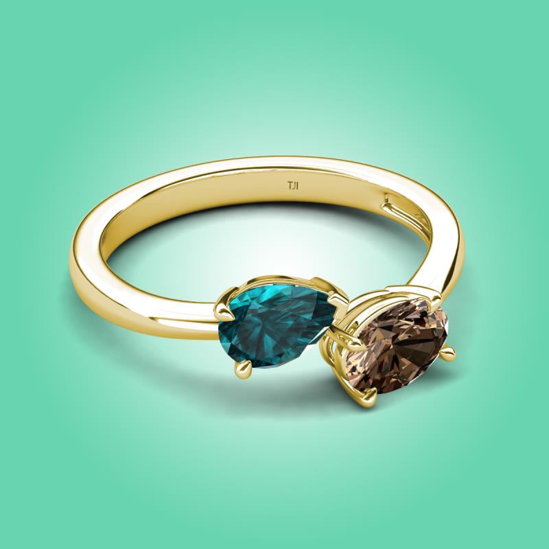 1.60 ctw London Blue Topaz Pear Shape 7x5 mm & Smoky Quartz Oval Shape 7x5 mm with Prong setting Two Stone Duo Women Engagement Ring in 18K Yellow Gold More Details ...