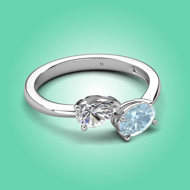 1.57 ctw Moissanite Pear Shape 7x5 mm & Aquamarine Oval Shape 7x5 mm with Prong setting Two Stone Duo Women Engagement Ring in Platinum More Details ...