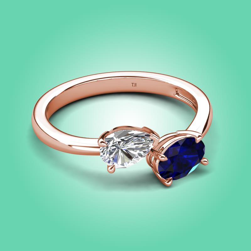 1.75 ctw Moissanite Pear Shape 7x5 mm & Blue Sapphire Oval Shape 7x5 mm with Prong setting Two Stone Duo Women Engagement Ring in 14K Rose Gold More Details ...