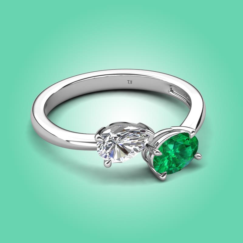 1.65 ctw Moissanite Pear Shape 7x5 mm & Emerald Oval Shape 7x5 mm with Prong setting Two Stone Duo Women Engagement Ring in 14K White Gold More Details ...