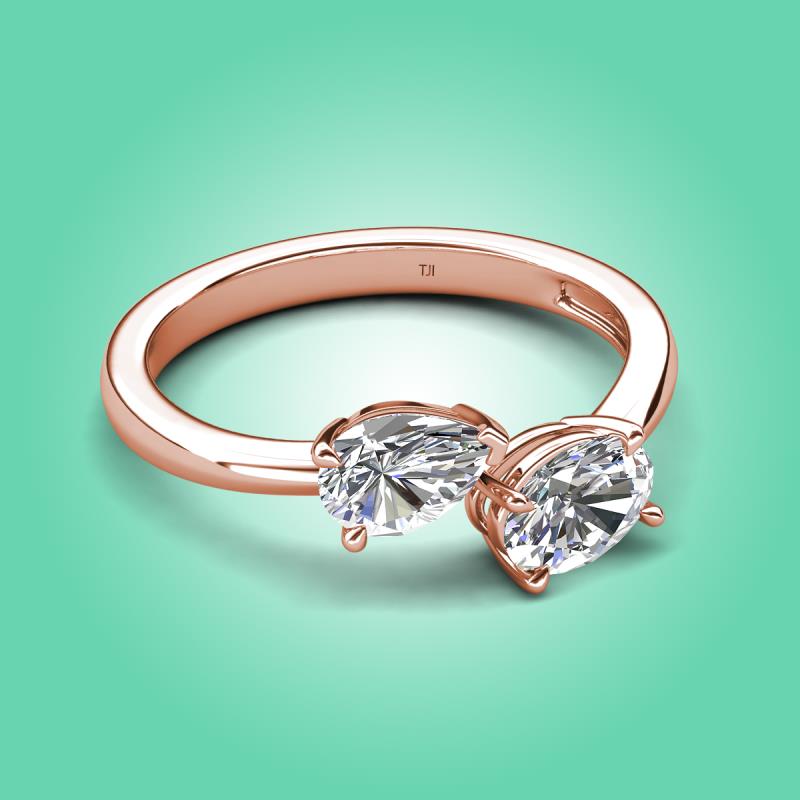 1.65 ctw Moissanite Pear Shape 7x5 mm & IGI Certified Lab Grown Diamond Oval Shape 7x5 mm with Prong setting Two Stone Duo Women Engagement Ring in 18K Rose Gold More Details ...