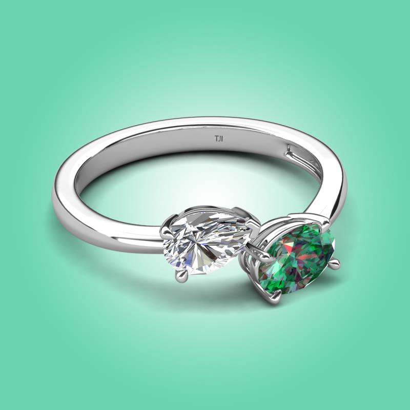 2.01 ctw Moissanite Pear Shape 7x5 mm & Lab Created Alexandrite Oval Shape 7x5 mm with Prong setting Two Stone Duo Women Engagement Ring in 18K White Gold More Details ...