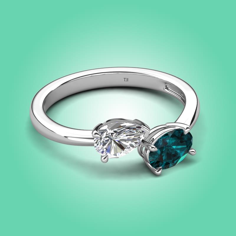 1.85 ctw Moissanite Pear Shape 7x5 mm & London Blue Topaz Oval Shape 7x5 mm with Prong setting Two Stone Duo Women Engagement Ring in 14K White Gold More Details ...