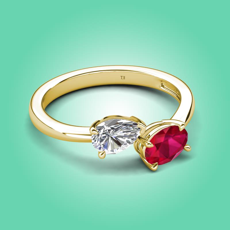 1.75 ctw Moissanite Pear Shape 7x5 mm & Ruby Oval Shape 7x5 mm with Prong setting Two Stone Duo Women Engagement Ring in 14K Yellow Gold More Details ...