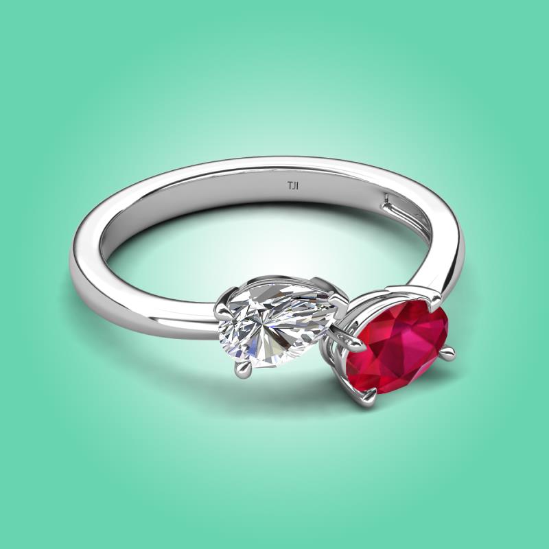 1.75 ctw Moissanite Pear Shape 7x5 mm & Ruby Oval Shape 7x5 mm with Prong setting Two Stone Duo Women Engagement Ring in Sterling Silver More Details ...