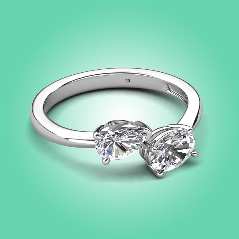 The Moissanite Pear Shape and White Sapphire Oval Shape Toi Et Moi Duo Ring of 1.85 ctw is the perfect representation of your unique and everlasting bond. The pear and oval shaped gemstones set in a Prong setting, complement each other perfectly, creating a stunning and timeless design that will capture the heart of your loved one, symbolizing your eternal love and commitment that will last a lifetime.