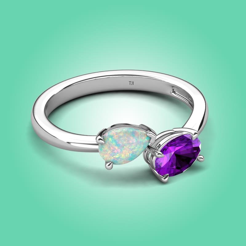 1.07 ctw Opal Pear Shape 7x5 mm & Amethyst Oval Shape 7x5 mm with Prong setting Two Stone Duo Women Engagement Ring in 14K White Gold More Details ...