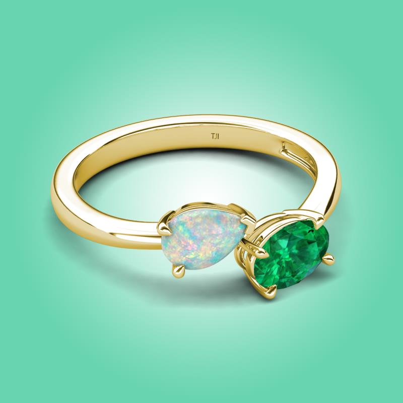 1.15 ctw Opal Pear Shape 7x5 mm & Emerald Oval Shape 7x5 mm with Prong setting Two Stone Duo Women Engagement Ring in 14K Yellow Gold More Details ...