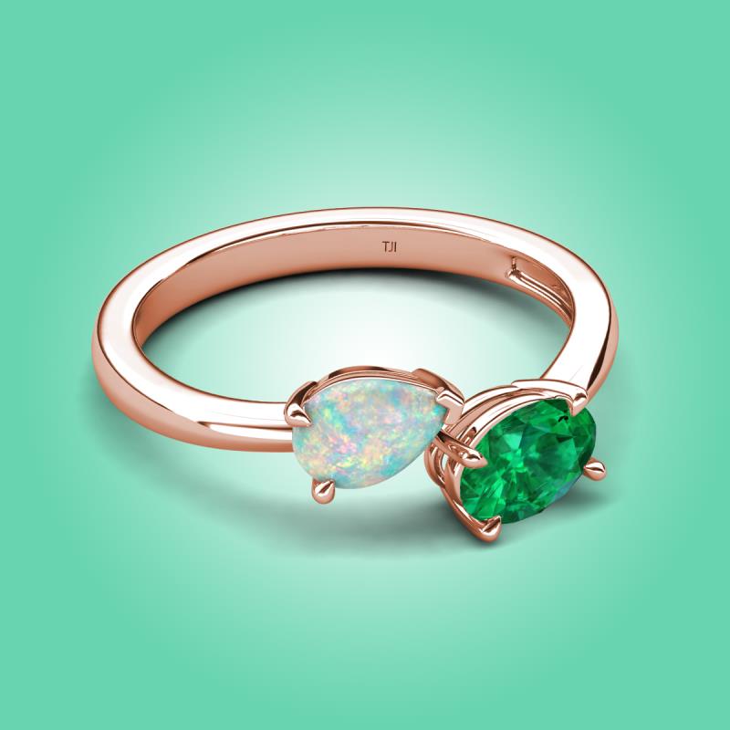1.15 ctw Opal Pear Shape 7x5 mm & Emerald Oval Shape 7x5 mm with Prong setting Two Stone Duo Women Engagement Ring in 18K Rose Gold More Details ...