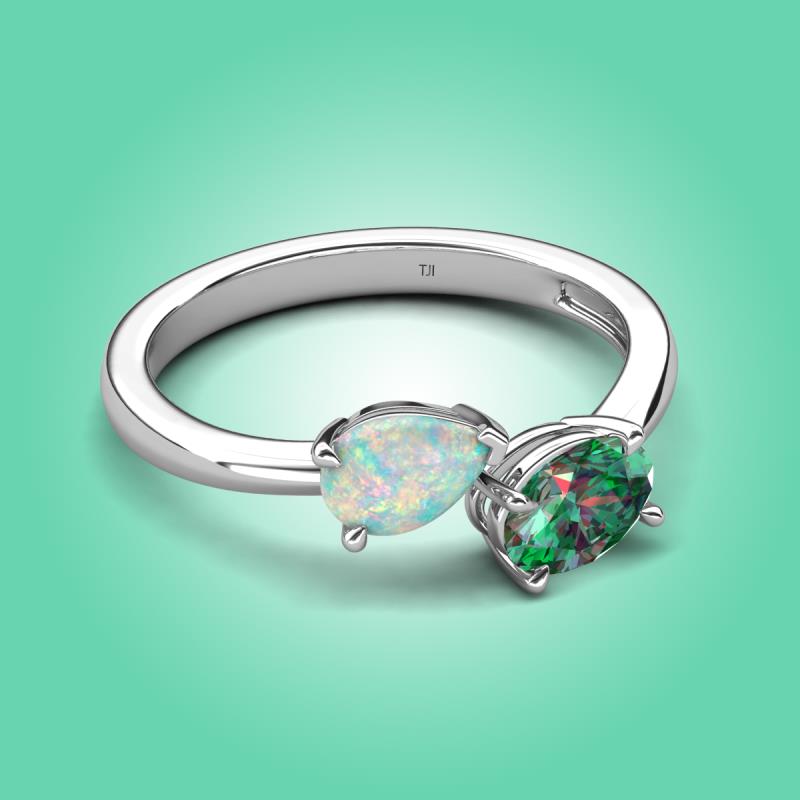 1.51 ctw Opal Pear Shape 7x5 mm & Lab Created Alexandrite Oval Shape 7x5 mm with Prong setting Two Stone Duo Women Engagement Ring in 14K White Gold More Details ...