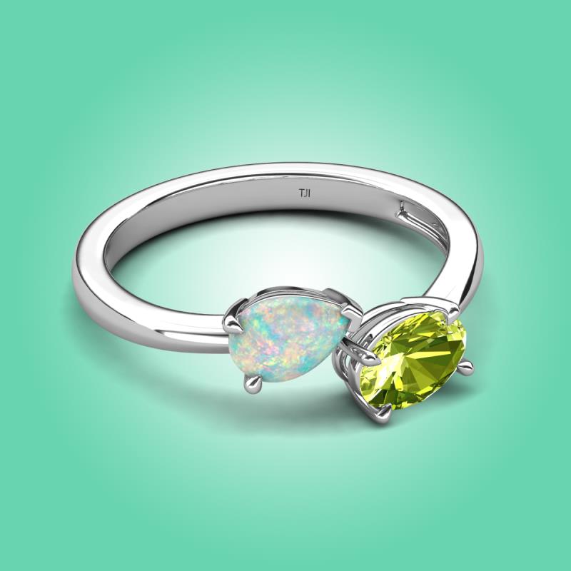 1.25 ctw Opal Pear Shape 7x5 mm & Peridot Oval Shape 7x5 mm with Prong setting Two Stone Duo Women Engagement Ring in 14K White Gold More Details ...