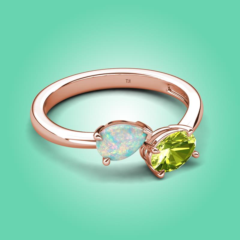 1.25 ctw Opal Pear Shape 7x5 mm & Peridot Oval Shape 7x5 mm with Prong setting Two Stone Duo Women Engagement Ring in 18K Rose Gold More Details ...