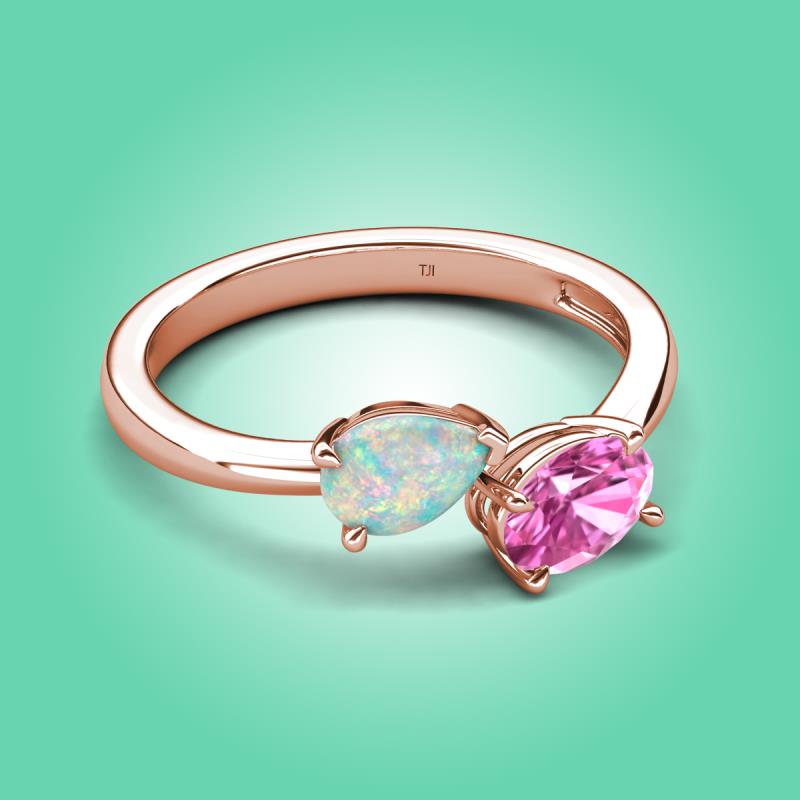 1.35 ctw Opal Pear Shape 7x5 mm & Pink Sapphire Oval Shape 7x5 mm with Prong setting Two Stone Duo Women Engagement Ring in 18K Rose Gold More Details ...