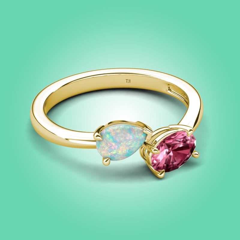 1.20 ctw Opal Pear Shape 7x5 mm & Pink Tourmaline Oval Shape 7x5 mm with Prong setting Two Stone Duo Women Engagement Ring in 14K Yellow Gold More Details ...