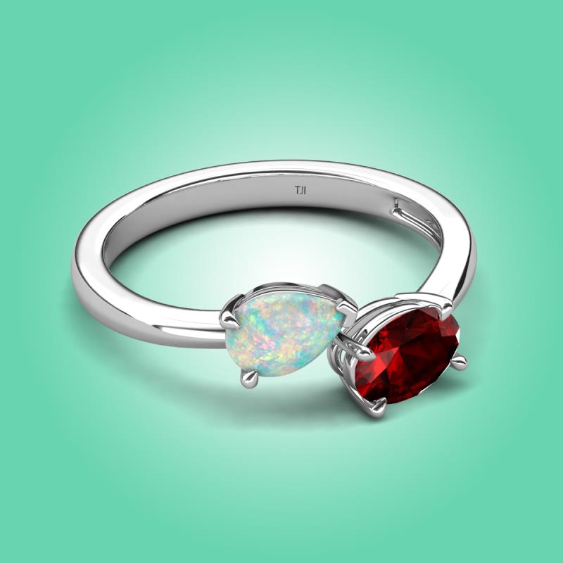 1.30 ctw Opal Pear Shape 7x5 mm & Red Garnet Oval Shape 7x5 mm with Prong setting Two Stone Duo Women Engagement Ring in 14K White Gold More Details ...