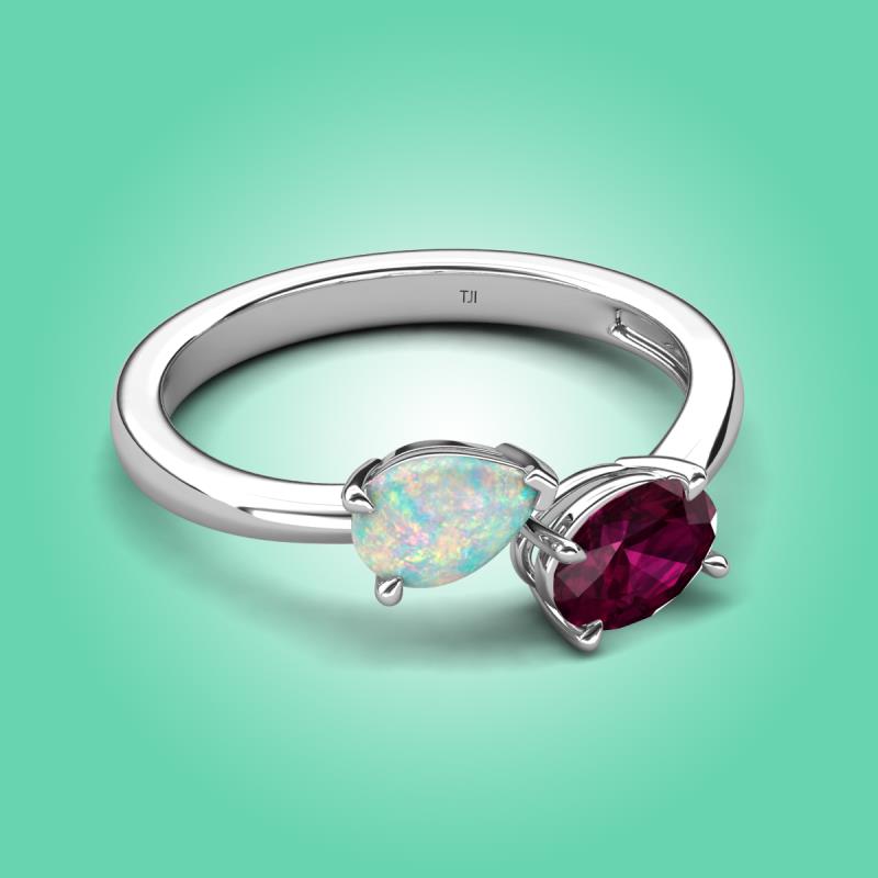 1.35 ctw Opal Pear Shape 7x5 mm & Rhodolite Garnet Oval Shape 7x5 mm with Prong setting Two Stone Duo Women Engagement Ring in 18K White Gold More Details ...