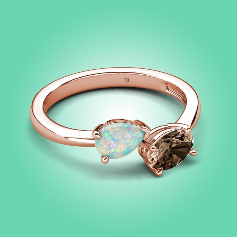 1.10 ctw Opal Pear Shape 7x5 mm & Smoky Quartz Oval Shape 7x5 mm with Prong setting Two Stone Duo Women Engagement Ring in 18K Rose Gold More Details ...