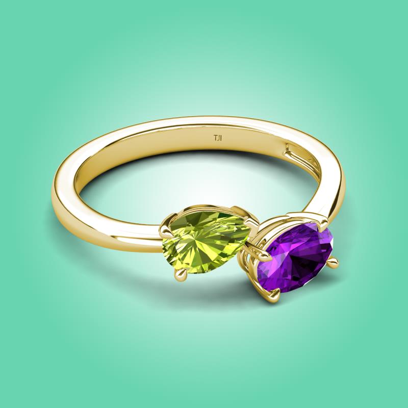 1.52 ctw Peridot Pear Shape 7x5 mm & Amethyst Oval Shape 7x5 mm with Prong setting Two Stone Duo Women Engagement Ring in 18K Yellow Gold More Details ...