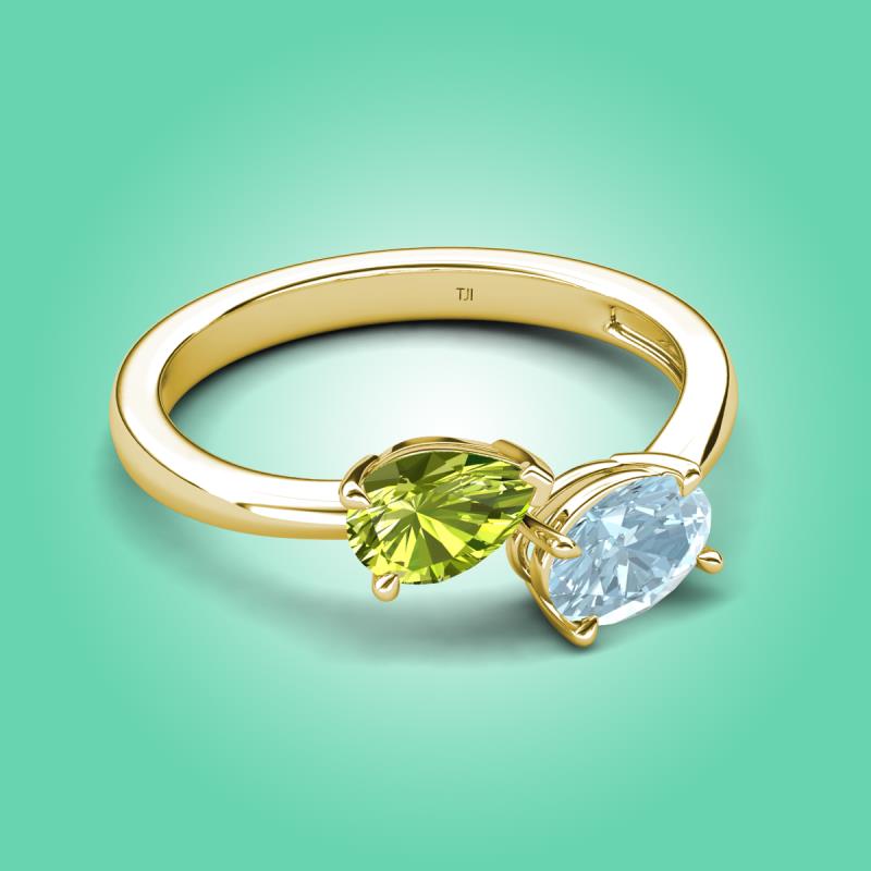 1.52 ctw Peridot Pear Shape 7x5 mm & Aquamarine Oval Shape 7x5 mm with Prong setting Two Stone Duo Women Engagement Ring in 14K Yellow Gold More Details ...