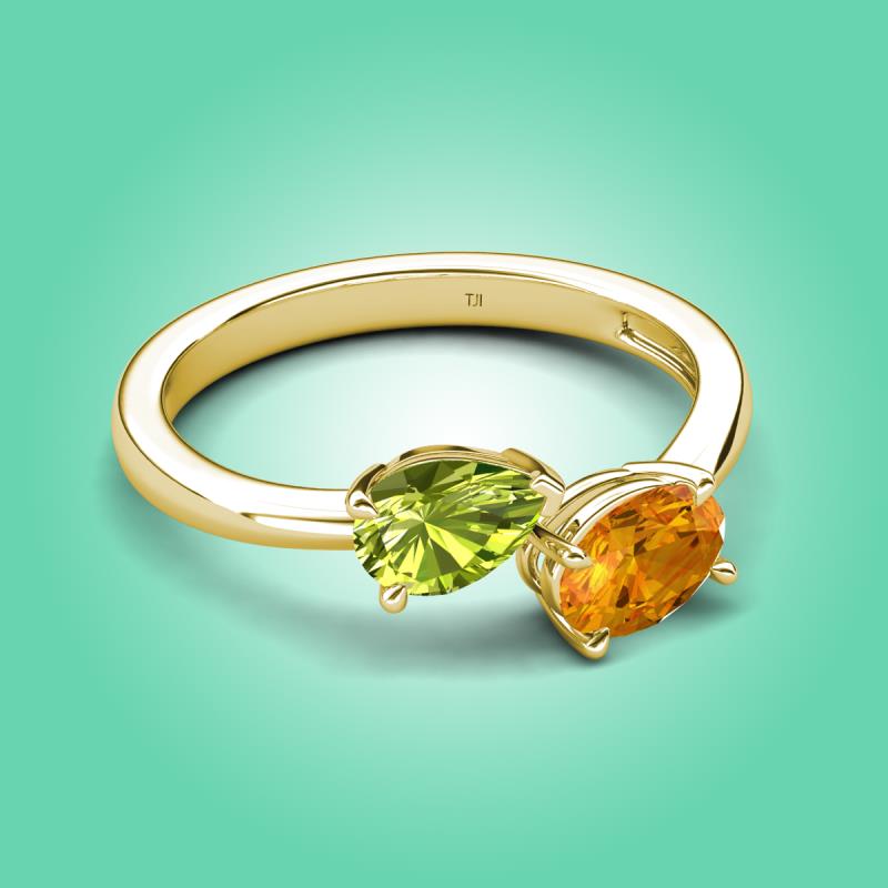 1.52 ctw Peridot Pear Shape 7x5 mm & Citrine Oval Shape 7x5 mm with Prong setting Two Stone Duo Women Engagement Ring in 18K Yellow Gold More Details ...