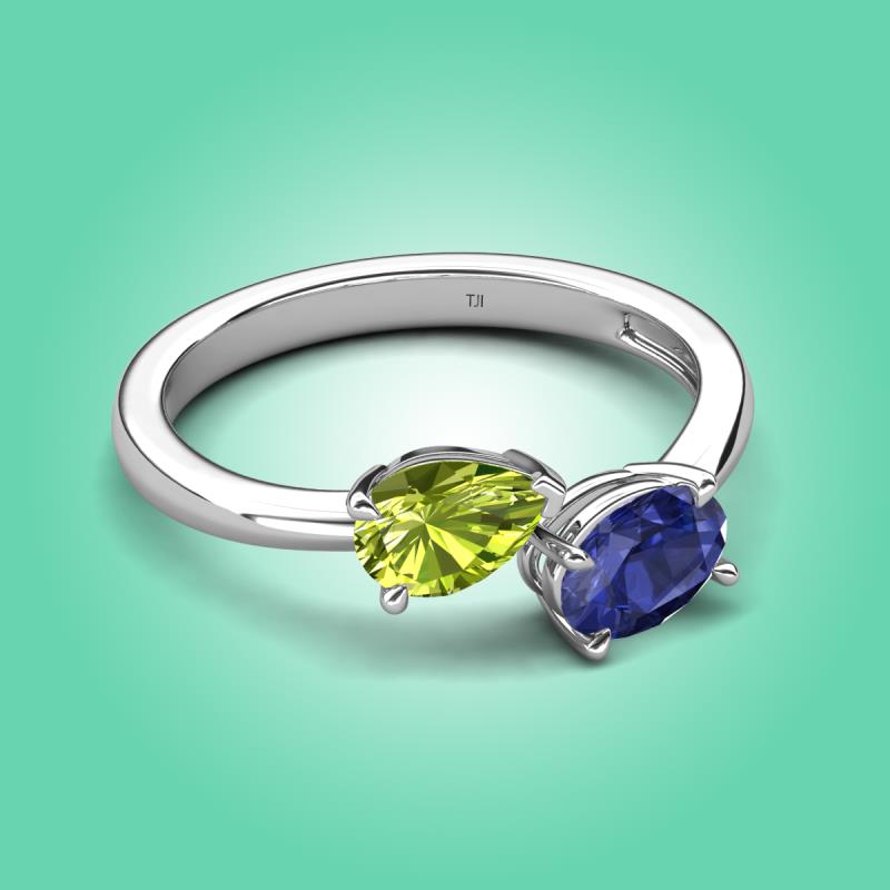 1.47 ctw Peridot Pear Shape 7x5 mm & Iolite Oval Shape 7x5 mm with Prong setting Two Stone Duo Women Engagement Ring in 14K White Gold More Details ...
