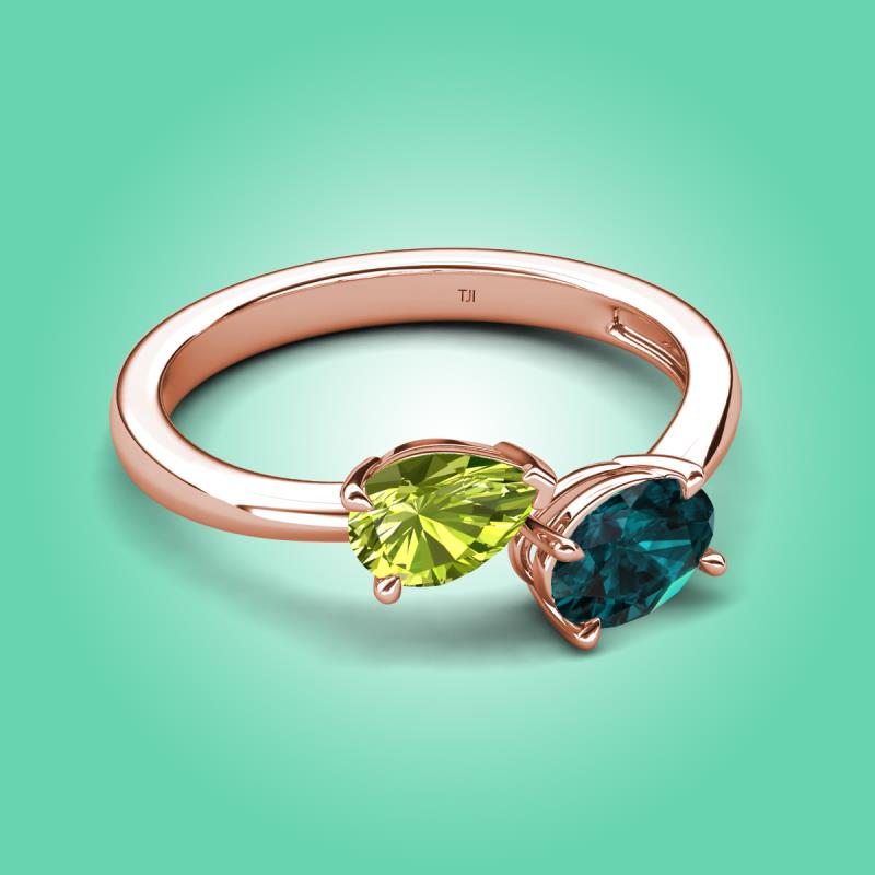 1.80 ctw Peridot Pear Shape 7x5 mm & London Blue Topaz Oval Shape 7x5 mm with Prong setting Two Stone Duo Women Engagement Ring in 14K Rose Gold More Details ...