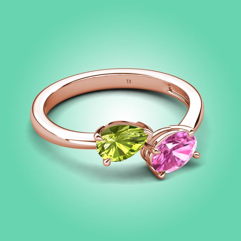 1.80 ctw Peridot Pear Shape 7x5 mm & Pink Sapphire Oval Shape 7x5 mm with Prong setting Two Stone Duo Women Engagement Ring in 14K Rose Gold More Details ...