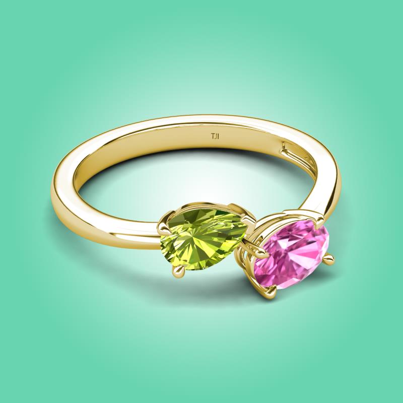 1.80 ctw Peridot Pear Shape 7x5 mm & Pink Sapphire Oval Shape 7x5 mm with Prong setting Two Stone Duo Women Engagement Ring in 14K Yellow Gold More Details ...