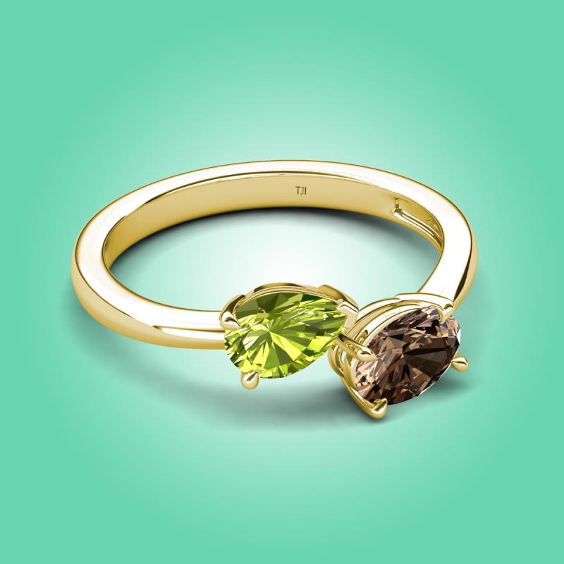 1.55 ctw Peridot Pear Shape 7x5 mm & Smoky Quartz Oval Shape 7x5 mm with Prong setting Two Stone Duo Women Engagement Ring in 18K Yellow Gold More Details ...