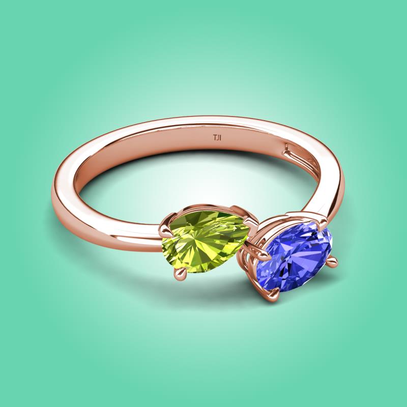 1.65 ctw Peridot Pear Shape 7x5 mm & Tanzanite Oval Shape 7x5 mm with Prong setting Two Stone Duo Women Engagement Ring in 14K Rose Gold More Details ...