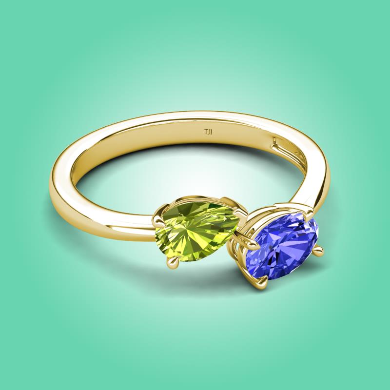 1.65 ctw Peridot Pear Shape 7x5 mm & Tanzanite Oval Shape 7x5 mm with Prong setting Two Stone Duo Women Engagement Ring in 18K Yellow Gold More Details ...