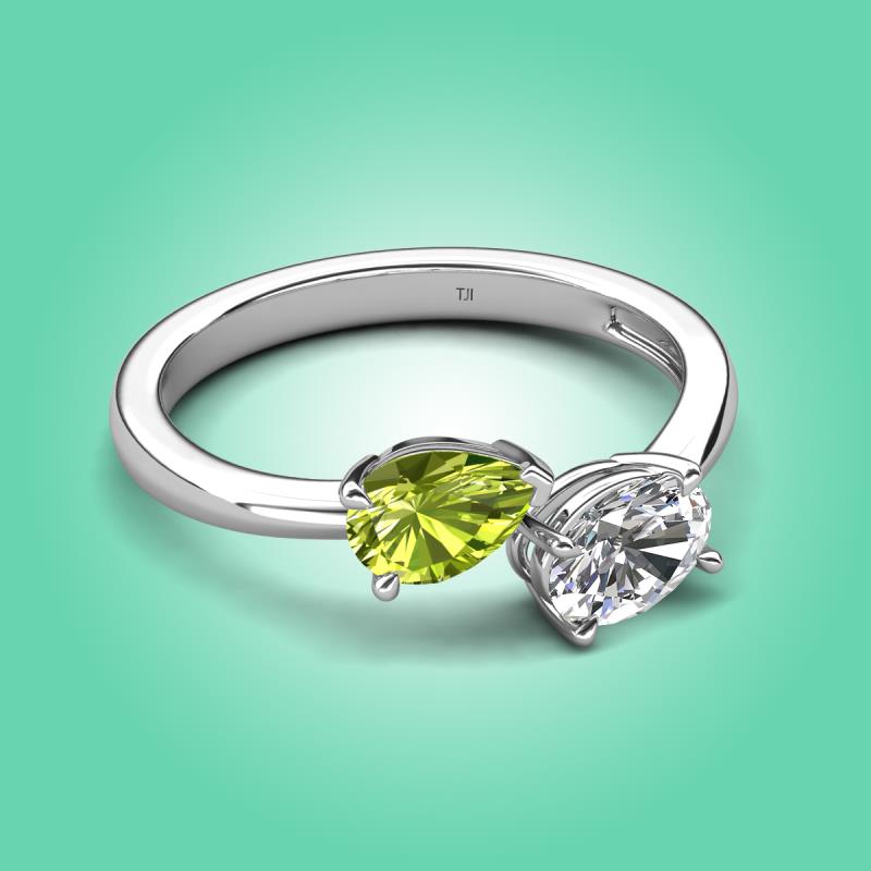 1.80 ctw Peridot Pear Shape 7x5 mm & White Sapphire Oval Shape 7x5 mm with Prong setting Two Stone Duo Women Engagement Ring in Platinum More Details ...