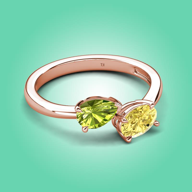 1.80 ctw Peridot Pear Shape 7x5 mm & Yellow Sapphire Oval Shape 7x5 mm with Prong setting Two Stone Duo Women Engagement Ring in 14K Rose Gold More Details ...