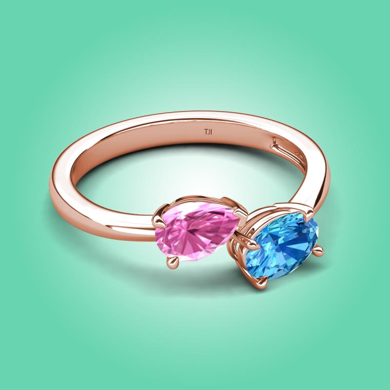 1.90 ctw Pink Sapphire Pear Shape 7x5 mm & Blue Topaz Oval Shape 7x5 mm with Prong setting Two Stone Duo Women Engagement Ring in 14K Rose Gold More Details ...