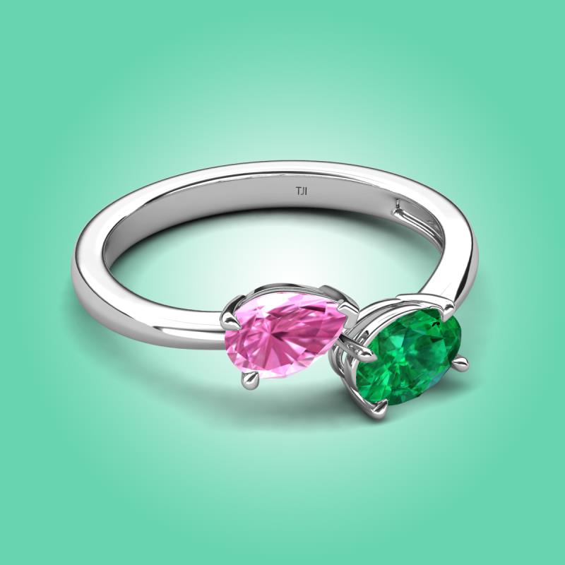 1.70 ctw Pink Sapphire Pear Shape 7x5 mm & Emerald Oval Shape 7x5 mm with Prong setting Two Stone Duo Women Engagement Ring in Platinum More Details ...