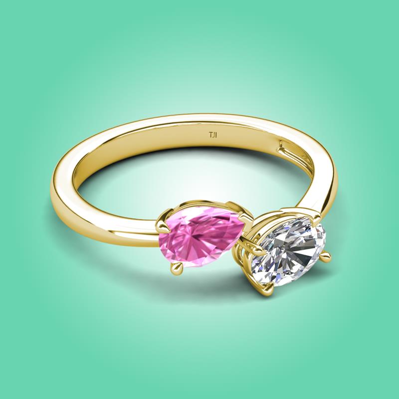 1.70 ctw Pink Sapphire Pear Shape 7x5 mm & IGI Certified Lab Grown Diamond Oval Shape 7x5 mm with Prong setting Two Stone Duo Women Engagement Ring in 18K Yellow Gold More Details ...