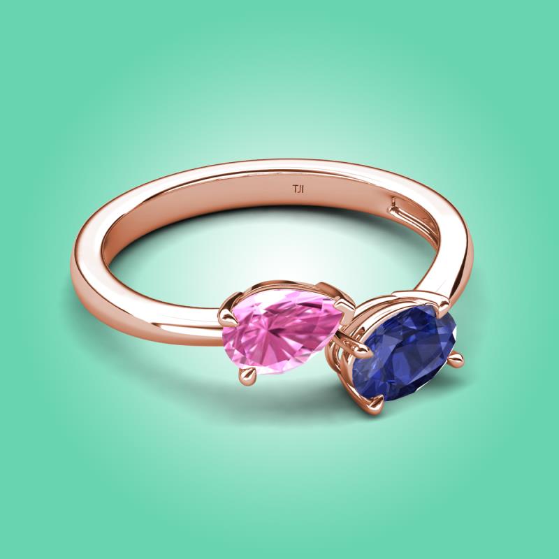 1.57 ctw Pink Sapphire Pear Shape 7x5 mm & Iolite Oval Shape 7x5 mm with Prong setting Two Stone Duo Women Engagement Ring in 18K Rose Gold More Details ...