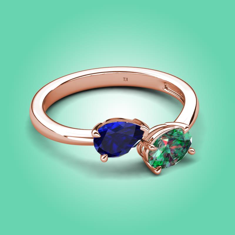 2.06 ctw Pink Sapphire Pear Shape 7x5 mm & Lab Created Alexandrite Oval Shape 7x5 mm with Prong setting Two Stone Duo Women Engagement Ring in 18K Rose Gold More Details ...