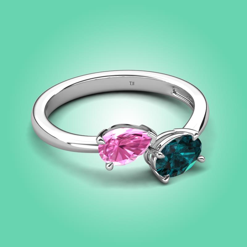 1.90 ctw Pink Sapphire Pear Shape 7x5 mm & London Blue Topaz Oval Shape 7x5 mm with Prong setting Two Stone Duo Women Engagement Ring in 14K White Gold More Details ...