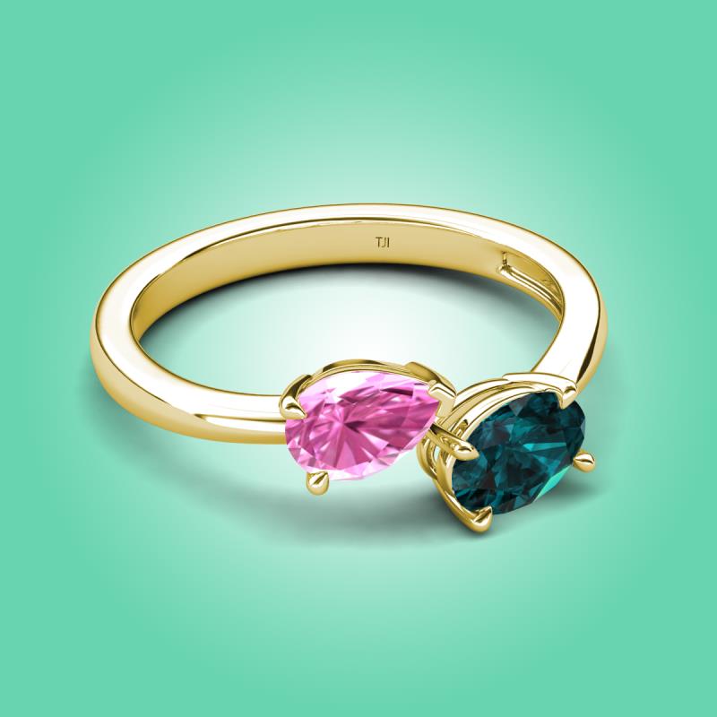 1.90 ctw Pink Sapphire Pear Shape 7x5 mm & London Blue Topaz Oval Shape 7x5 mm with Prong setting Two Stone Duo Women Engagement Ring in 18K Yellow Gold More Details ...